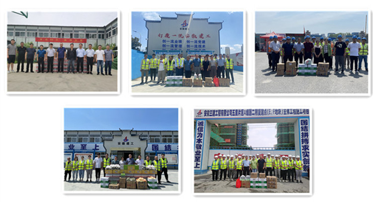 公司黨委書記、董事長何洪春,黨委副書記、總經(jīng)理徐少華等班子成員分別帶隊,領(lǐng)導班子成員先后前往濱湖科學城項目、天長恒大湖山半島項目、安徽省公共衛(wèi)生臨床中心項目、少荃體育中心項目、葉集明發(fā)城市廣場項目、源長花園項目、合肥一中東校區(qū)項目、嚴店鄉(xiāng)引江濟淮二期項目等項目一線、工廠車間,親切慰問堅守崗位、奮戰(zhàn)在高溫一線的干部職工,為他們送上防暑降溫物品,感謝他們?yōu)楣景l(fā)展做出的貢獻,同時叮囑他們在高溫天氣要合理安排作息時間,注意勞逸結(jié)合,確保施工安全。
