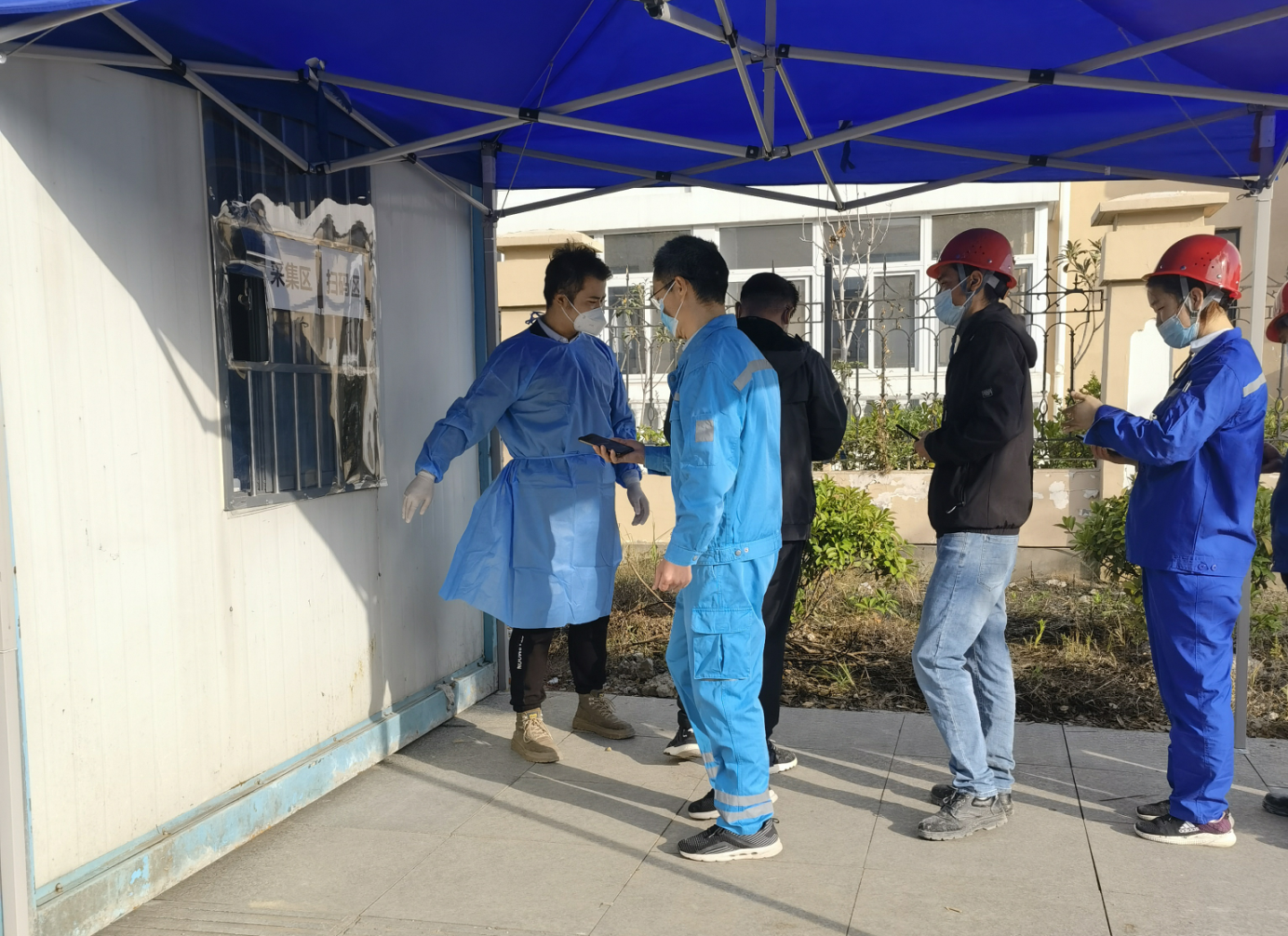 近日,北城工業(yè)公司黨支部積極響應(yīng)吳山鎮(zhèn)政府防疫部門號召,共派遣6名志愿者前往核酸檢測常駐點參與核酸采集工作與維穩(wěn)工作。公司兩名領(lǐng)導(dǎo)班子老黨員主動帶頭報名,組成了“五十多歲的‘老黨員’+退伍武警‘新黨員’+優(yōu)秀青年‘團(tuán)員’”的新志愿團(tuán)隊,共同參與疫情防控工作。