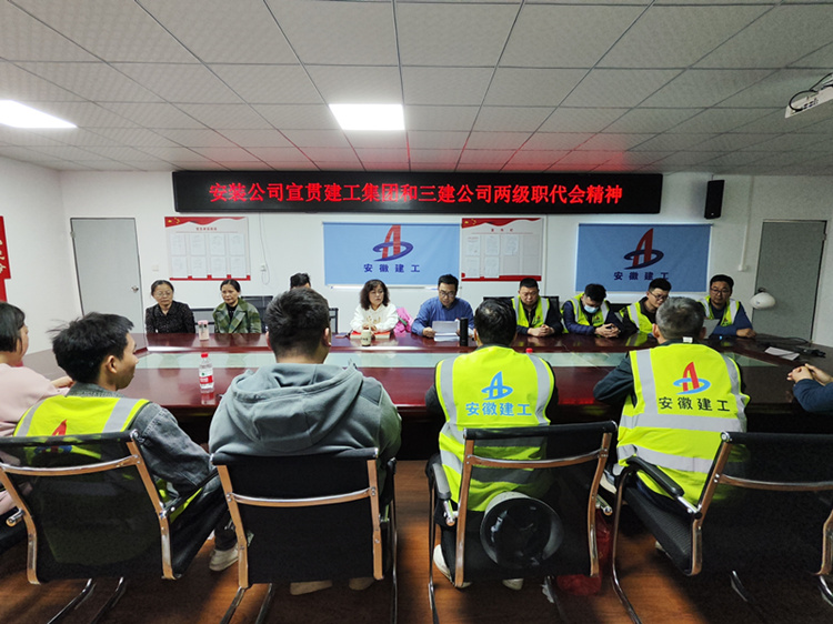為更好宣貫建工集團(tuán)二屆三次職代會暨2023年職代會精神和安徽三建十二屆四次職代會暨2023年工作會議精神,并將職代會精神宣貫到基層一線,3月8日,安裝公司在合肥理工學(xué)院1標(biāo)段項(xiàng)目部組織開展專題宣貫會,深入學(xué)習(xí)兩級貫徹職代會精神。安裝公司領(lǐng)導(dǎo)班子成員、黨員和職工代表以及項(xiàng)目部全體管理人員等30余人參加會議。