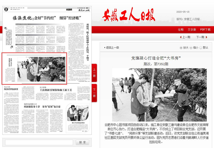 安徽工人日?qǐng)?bào)——黨旗凝心打造合肥“大書(shū)房” 發(fā)布時(shí)間:2020-05-18 來(lái)源:安徽工人日?qǐng)?bào) 撰稿人:李艷麗 瀏覽次數(shù):19912 報(bào)道鏈接:http://epaper.xunbaoah.com/index/article/articleinfo?doc_id=3334