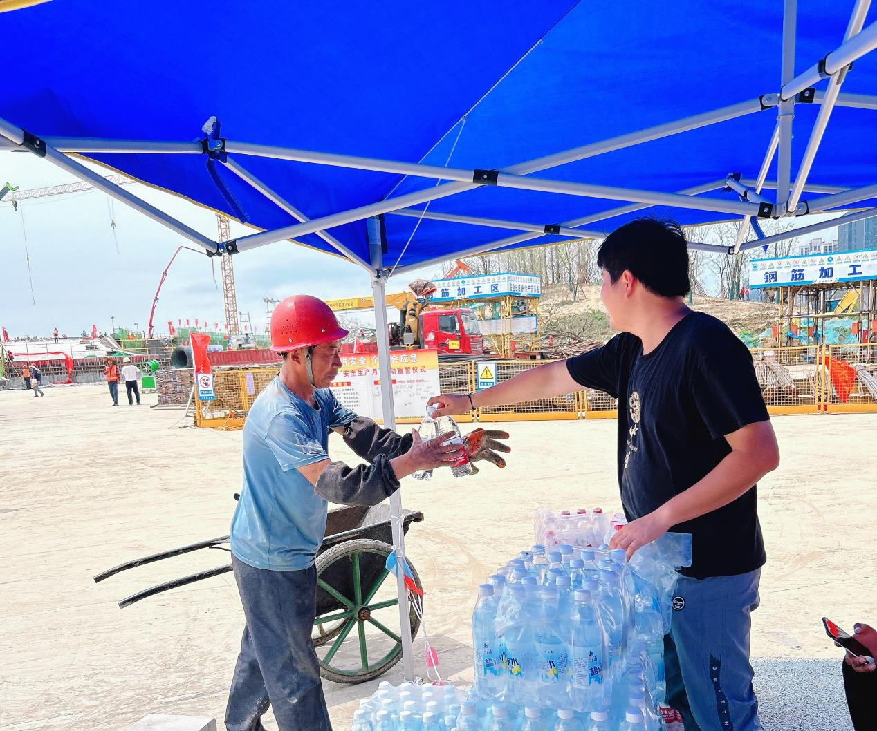 面對(duì)持續(xù)不斷的高溫天氣,做好后勤保障確保安全生產(chǎn)是項(xiàng)目建設(shè)的關(guān)鍵。建工三建組織開(kāi)展“夏送清涼”活動(dòng),發(fā)放仁丹、綠豆、西瓜等防暑降溫物資,開(kāi)展夏季防暑專項(xiàng)培訓(xùn),傳授夏季防暑基本知識(shí)、應(yīng)急措施等。加強(qiáng)員工關(guān)愛(ài),豐富員工業(yè)余生活,定期開(kāi)展交心座談會(huì),了解員工實(shí)際問(wèn)題,解決員工實(shí)際困難,不斷提升員工幸福指數(shù)。