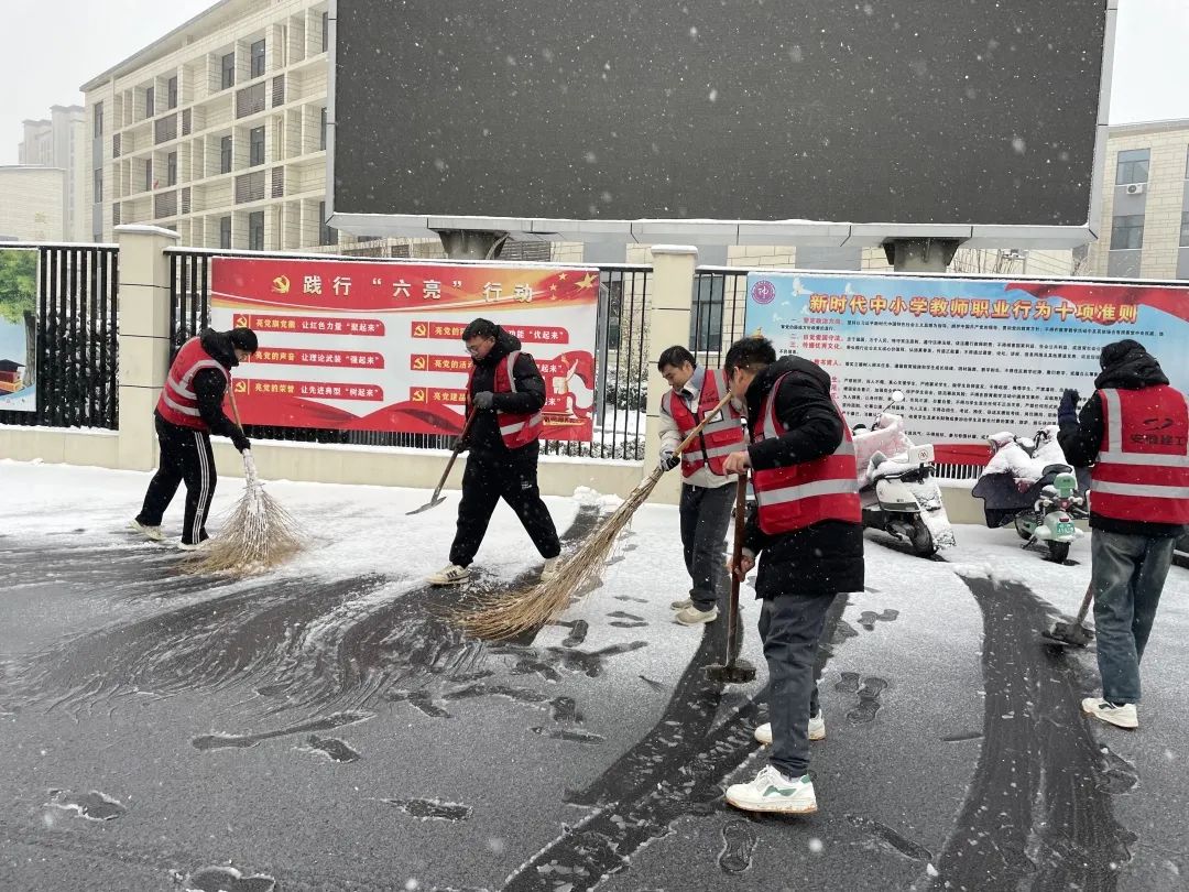 滁州市高新區(qū)城東片區(qū)產(chǎn)業(yè)升級(jí)示范園一期、二期建設(shè)項(xiàng)目組織管理人員前往天長(zhǎng)市第二中學(xué)門口進(jìn)行掃雪活動(dòng),為出行的學(xué)生、老師及接送家長(zhǎng)提供交通便利,做好安全保障。