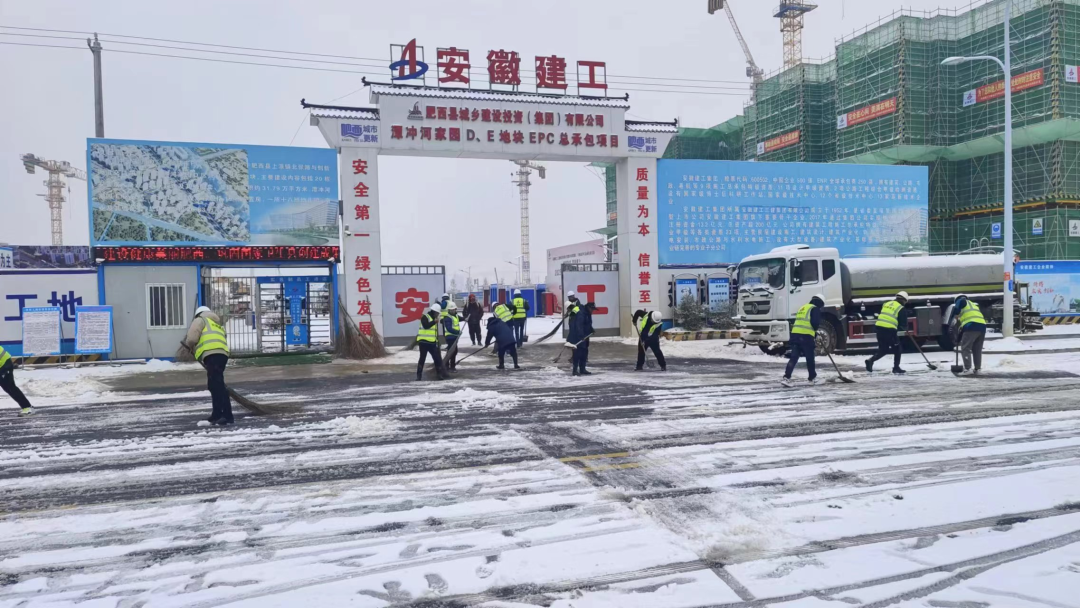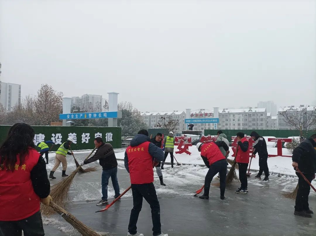 廬江同大鎮(zhèn)集鎮(zhèn)安置點(diǎn)項(xiàng)目職工組成黨員先鋒隊(duì)和青年突擊隊(duì),對(duì)項(xiàng)目周邊區(qū)域及道路積雪進(jìn)行清掃,及時(shí)消除安全隱患,為職工出行安全做出了積極貢獻(xiàn)。
