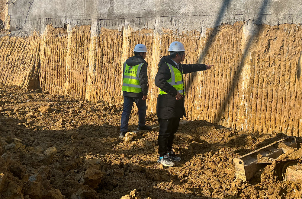 “春節(jié)是萬家團(tuán)圓的日子,但是為了保證項(xiàng)目進(jìn)度,達(dá)成產(chǎn)值目標(biāo),我們項(xiàng)目一線人員有義務(wù)堅(jiān)守崗位,努力打造合肥租賃保障性住房樣板工程?!笔┕T豐文龍正在進(jìn)行樁間土清理。