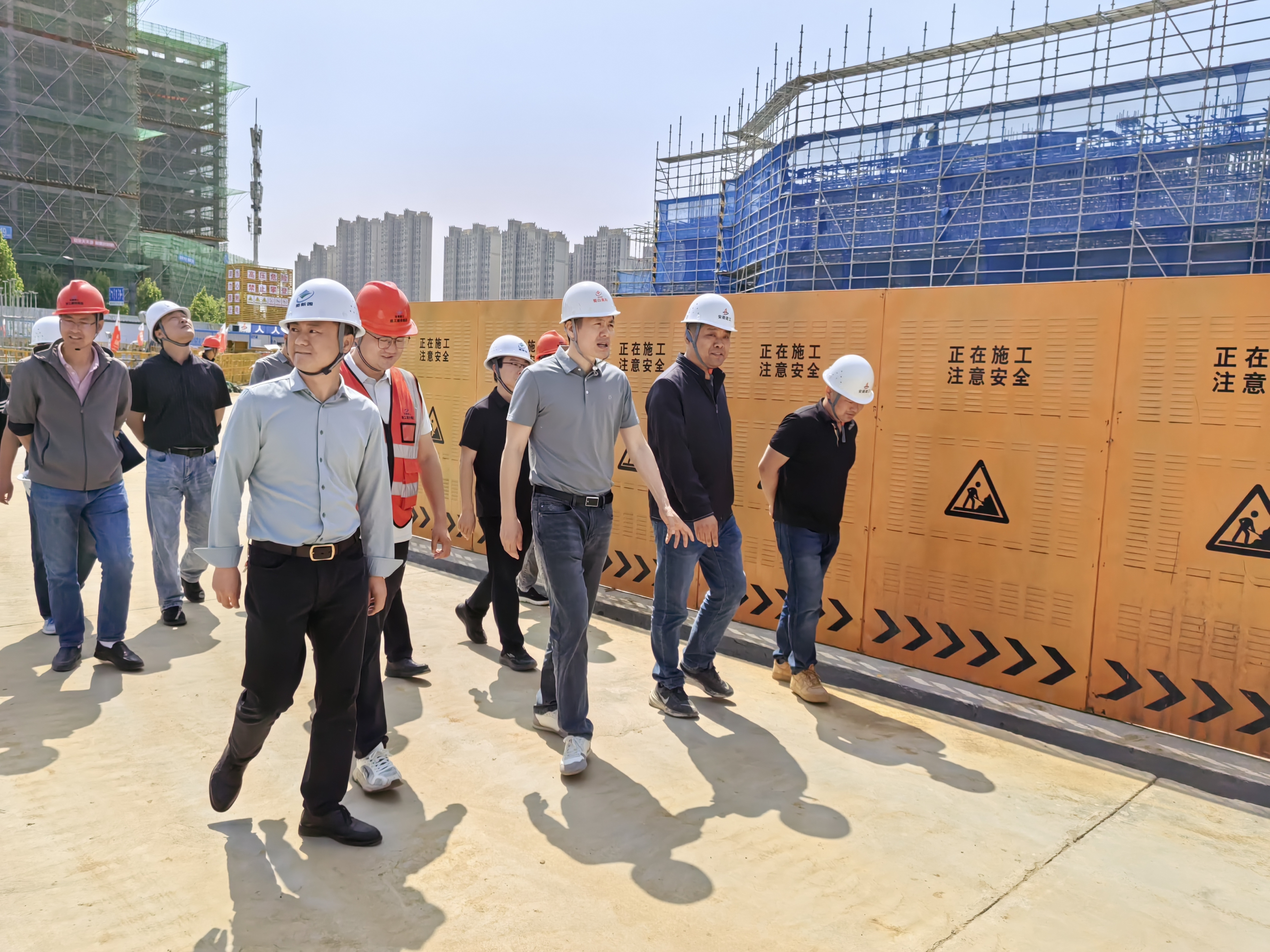 陳凱龍一行深入項(xiàng)目現(xiàn)場(chǎng),聽(tīng)取項(xiàng)目關(guān)于施工進(jìn)度、安全管理、質(zhì)量控制等方面的匯報(bào),實(shí)地查看了8#樓一層墻柱頂梁板、9#樓基礎(chǔ)、10#樓負(fù)一層墻柱頂梁板等作業(yè)面,并對(duì)項(xiàng)目現(xiàn)階段取得的成績(jī)表示肯定。陳凱龍強(qiáng)調(diào),高科·模數(shù)科技港項(xiàng)目是重點(diǎn)工程,必須始終堅(jiān)持“安全第一、質(zhì)量為本”的原則,一是要嚴(yán)格落實(shí)全員安全生產(chǎn)責(zé)任制,加強(qiáng)風(fēng)險(xiǎn)防控,杜絕麻痹思想;二是強(qiáng)化過(guò)程監(jiān)督,注重細(xì)節(jié)打磨,打造精品工程;三是科學(xué)統(tǒng)籌資源配置,確保項(xiàng)目按期交付。檢查期間,陳凱龍與一線施工人員親切交流,并叮囑項(xiàng)目部做好后勤保障,為工人創(chuàng)造安全、舒適的工作環(huán)境