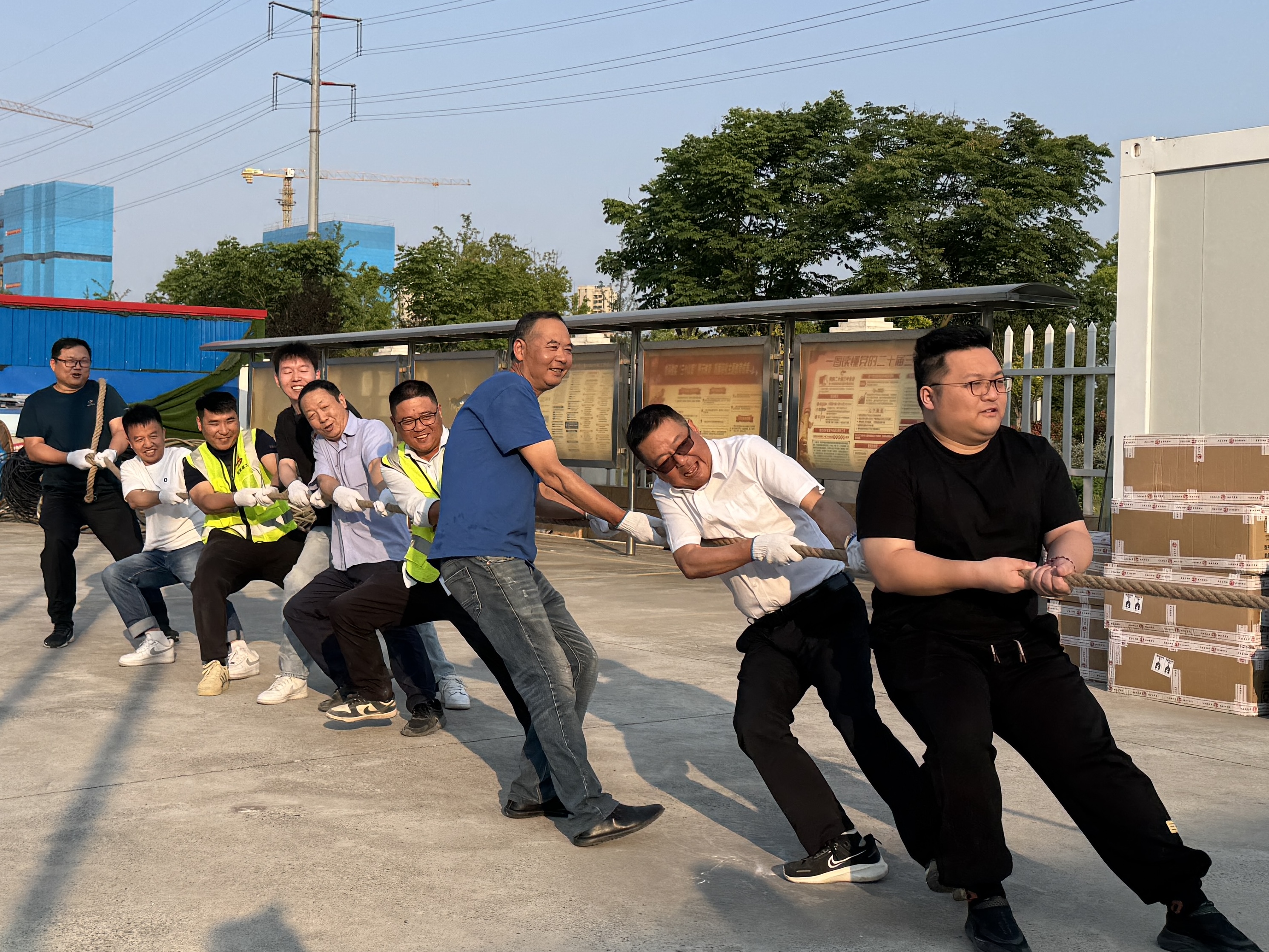 R23014地塊項目部精心策劃并組織全體參建人員開展了一場“粽情端午 力拔山河” 主題拔河比賽。賽場上,隊員們個個精神抖擻、齊心協(xié)力、奮力拼搏,此起彼伏的加油聲響徹整個賽場,場面熱鬧非凡,充分彰顯出項目同志昂揚向上的朝氣與活力。同時,項目部還貼心地準備粽子、香囊等飽含節(jié)日韻味的禮物,讓那些日夜奮戰(zhàn)在一線的職工們深切感受到來自項目部大家庭的暖心關懷。