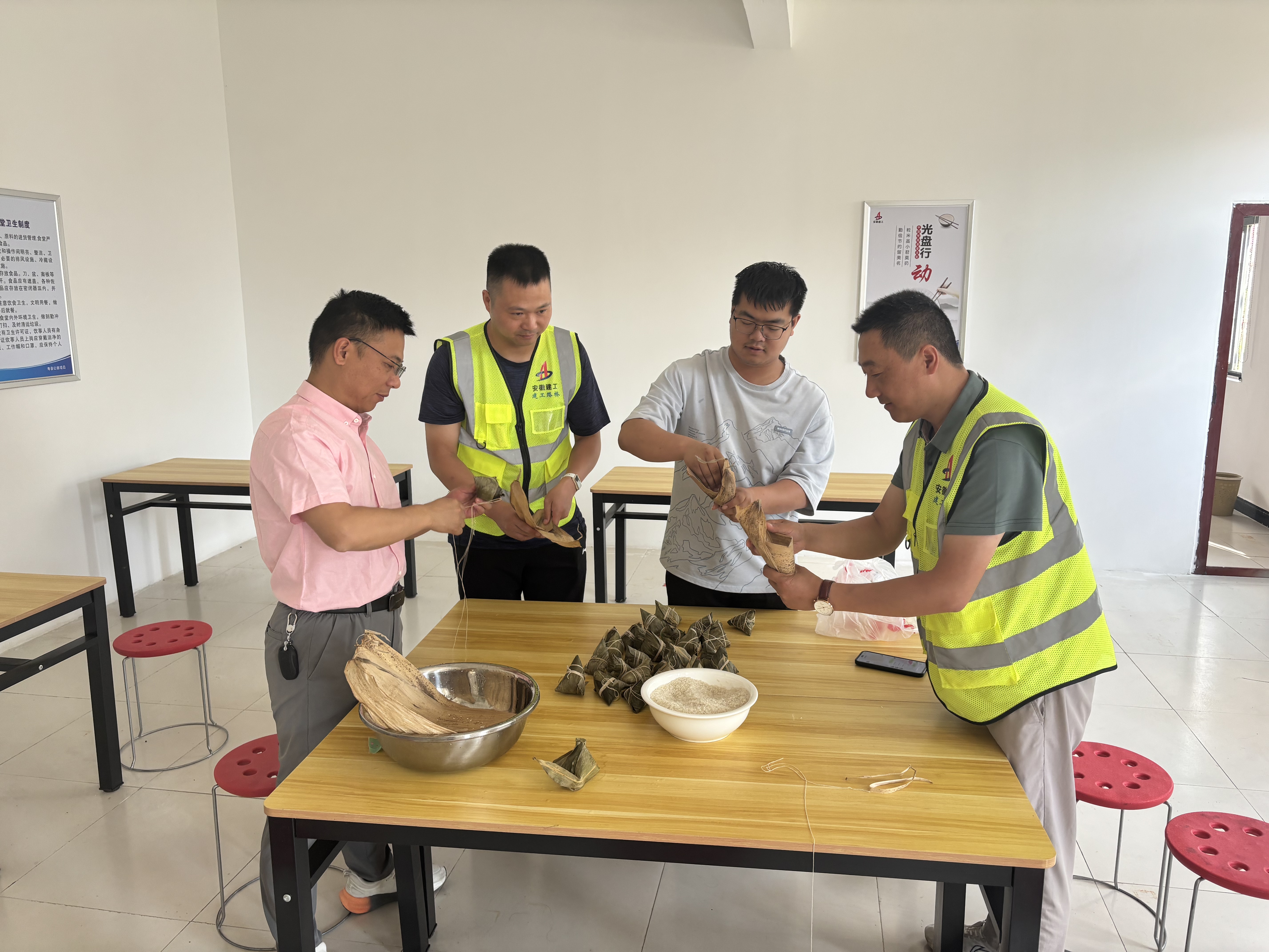 合肥未來大科學城片區(qū)(一期)儀器儀表產業(yè)園項目組織開展了“品端午粽香,守安全規(guī)章,建優(yōu)質工程”端午節(jié)主題活動,管理人員與工人們齊聚一堂,共同包粽子、品粽香?;顒蝇F(xiàn)場,經驗豐富的工友主動教學,手把手指導大家卷葉、填餡、捆扎,盡管包出的粽子形狀各異,但大家熱情高漲,現(xiàn)場歡聲笑語不斷。隨后,項目管理人員將包好的粽子以及咸鴨蛋、礦泉水分裝成袋,送到了現(xiàn)場工人手中。項目負責人朱明還為周邊環(huán)衛(wèi)工人送上了粽子和節(jié)日祝福,感謝他們?yōu)槌鞘姓麧嵉母冻觥?/span>