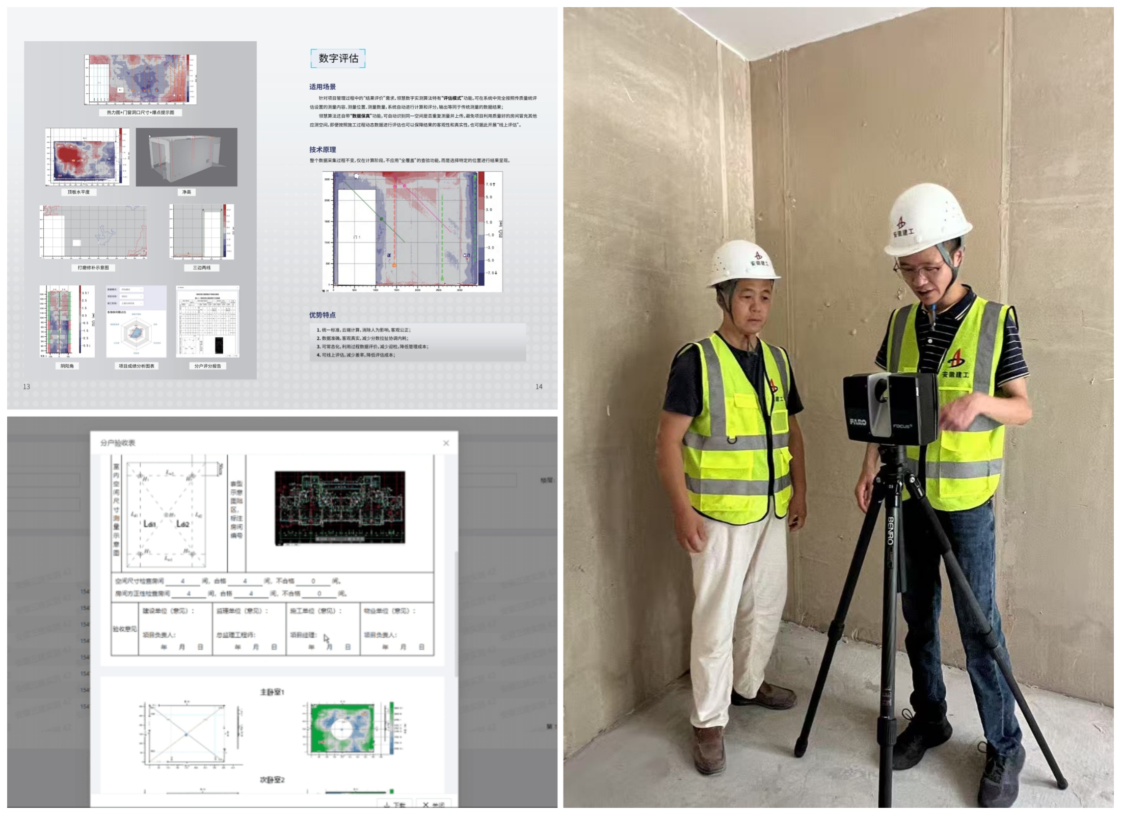 在合肥新西站安置點(diǎn)項(xiàng)目現(xiàn)場,操作人員通過移動(dòng)終端操控實(shí)測實(shí)量機(jī)器人,僅需3-5分鐘即可完成單戶多房間全屋掃描。機(jī)器人搭載的三維激光掃描儀以每秒200萬點(diǎn)速度捕捉空間數(shù)據(jù),自動(dòng)執(zhí)行墻面平整度、垂直度、陰陽角方正度等測量任務(wù),實(shí)時(shí)生成多維度數(shù)據(jù)報(bào)告,表格可按分戶驗(yàn)收格式自動(dòng)導(dǎo)出。相較傳統(tǒng)2人45分鐘(含20分鐘人工制表)的作業(yè)模式,效率提升近10倍,且規(guī)避了人為測量誤差。實(shí)測實(shí)量機(jī)器人的應(yīng)用,既減輕了項(xiàng)目人員測量工作負(fù)擔(dān),又提高了分戶驗(yàn)收數(shù)據(jù)準(zhǔn)確性,提升住宅工程交付效率,還可以減少中間移交糾紛,實(shí)現(xiàn)測量數(shù)據(jù)貫穿驗(yàn)收、整改、移交等各階段,數(shù)據(jù)可溯源、可共享、可重復(fù)利用,杜絕人為干擾,有效增強(qiáng)工程管理透明度。