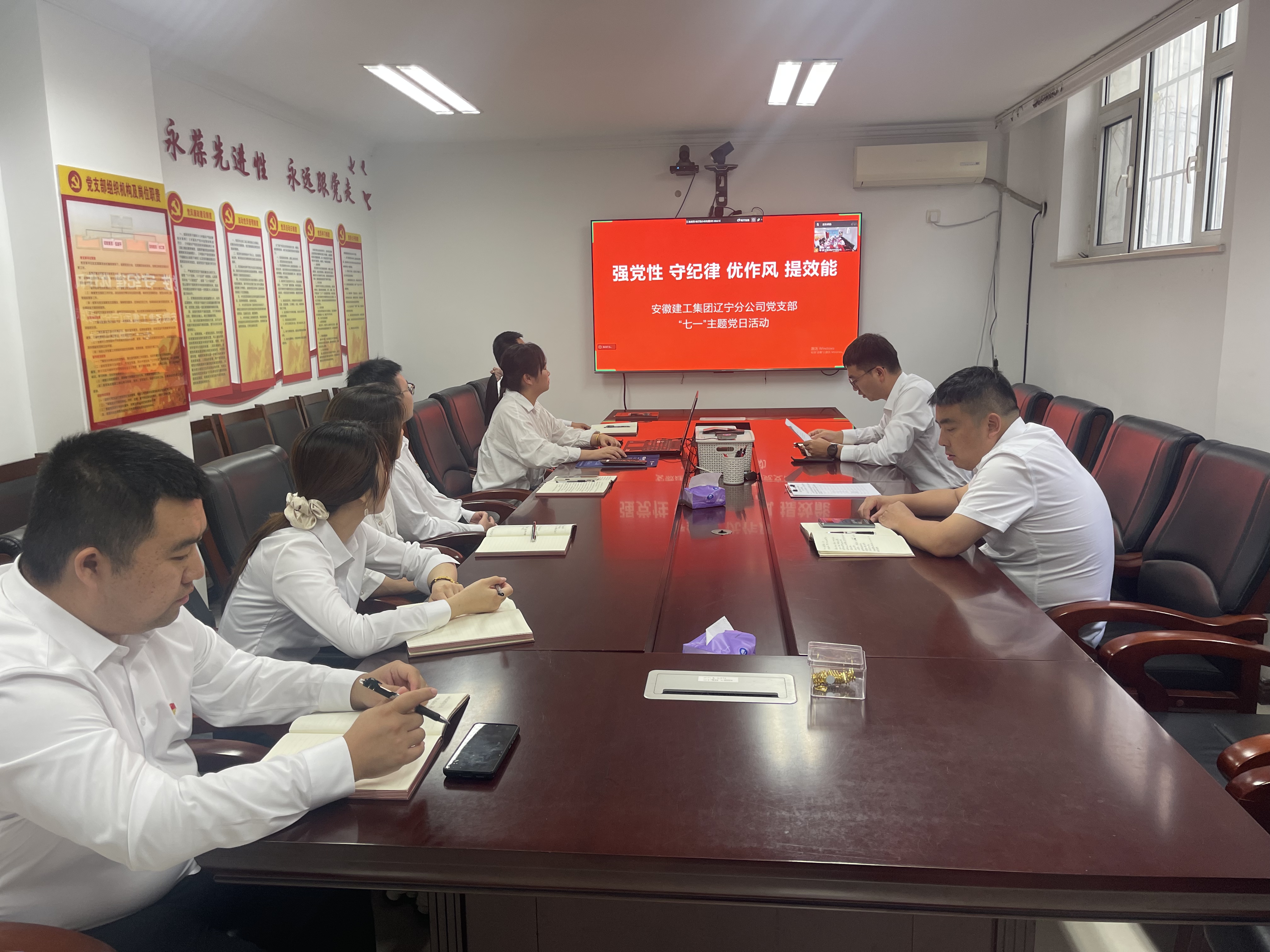 為慶祝中國共產(chǎn)黨成立104周年,推動(dòng)深入貫徹中央八項(xiàng)規(guī)定精神學(xué)習(xí)教育走深走實(shí),引領(lǐng)黨員干部持續(xù)深化思想認(rèn)識(shí),進(jìn)一步增強(qiáng)貫徹執(zhí)行的自覺性、主動(dòng)性,近日,安徽建工集團(tuán)遼寧分公司黨支部組織開展“強(qiáng)黨性 守紀(jì)律 優(yōu)作風(fēng) 提效能”“七一”主題黨日活動(dòng),共計(jì)22名黨員通過現(xiàn)場加視頻方式參加學(xué)習(xí)。
