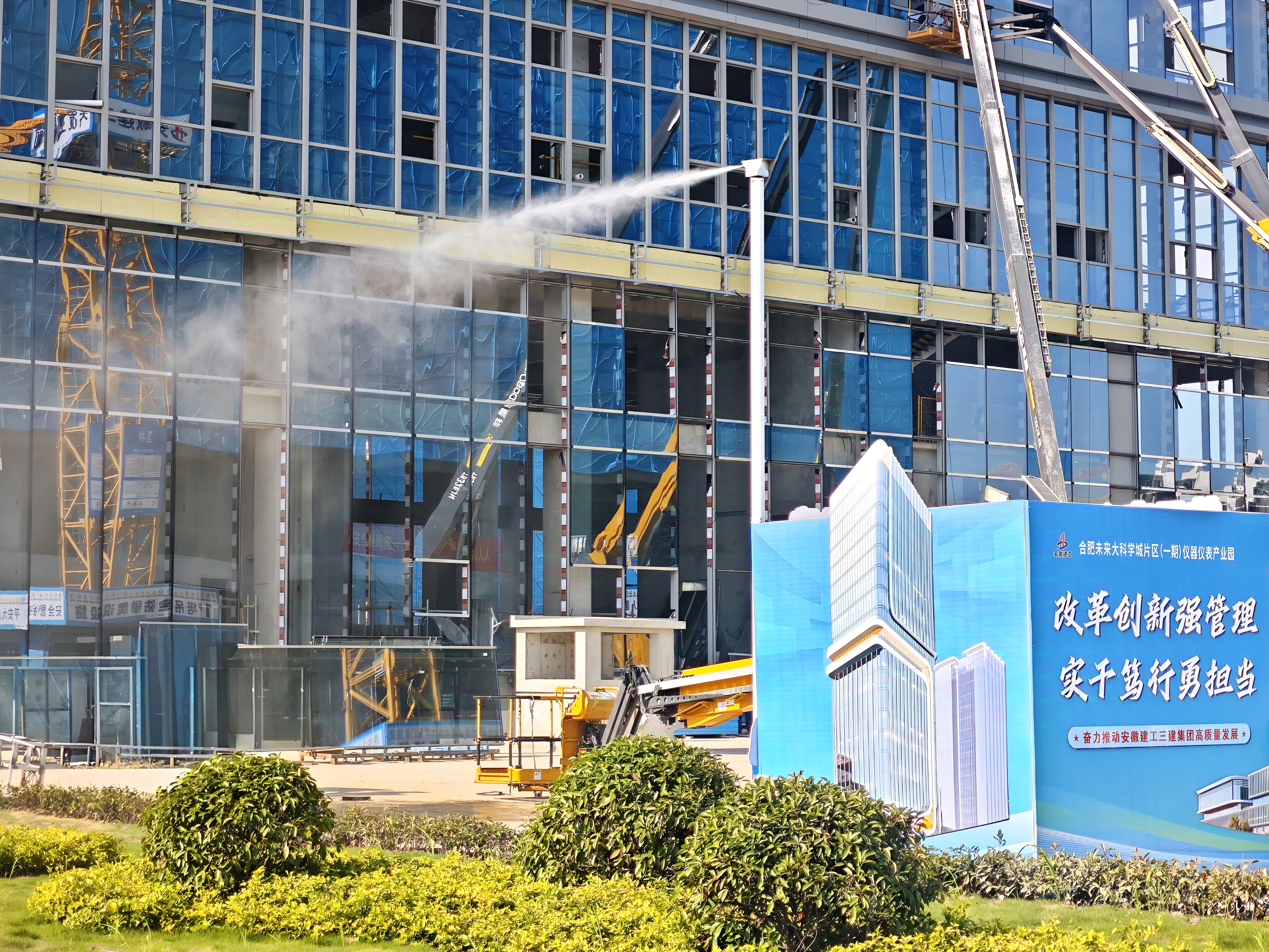 安裝公司合肥未來(lái)大科學(xué)城一期儀器儀表產(chǎn)業(yè)園安裝項(xiàng)目部為應(yīng)對(duì)高溫天氣所帶來(lái)的挑戰(zhàn),精心謀劃并配合布設(shè)安裝了智能高壓防塵噴霧設(shè)備。此項(xiàng)裝置創(chuàng)新運(yùn)用手機(jī)程序控制APP,能夠?qū)崿F(xiàn)自動(dòng)調(diào)節(jié)噴頭噴水時(shí)間和間隔時(shí)長(zhǎng),既能有效節(jié)約水資源,又能根據(jù)實(shí)際需求靈活調(diào)節(jié)出水效果。隨著高溫天氣的持續(xù),該項(xiàng)設(shè)備正有條不紊地運(yùn)作,細(xì)密的水珠從噴頭中噴涌而出,形成一層薄薄的水霧在空氣中彌漫開來(lái)。這一措施不僅能起到良好的防塵效果,還能有效降低項(xiàng)目現(xiàn)場(chǎng)的施工溫度,給奮戰(zhàn)在一線的工人們送去絲絲涼意,為項(xiàng)目的順利推進(jìn)營(yíng)造更為舒適、安全的現(xiàn)場(chǎng)環(huán)境。