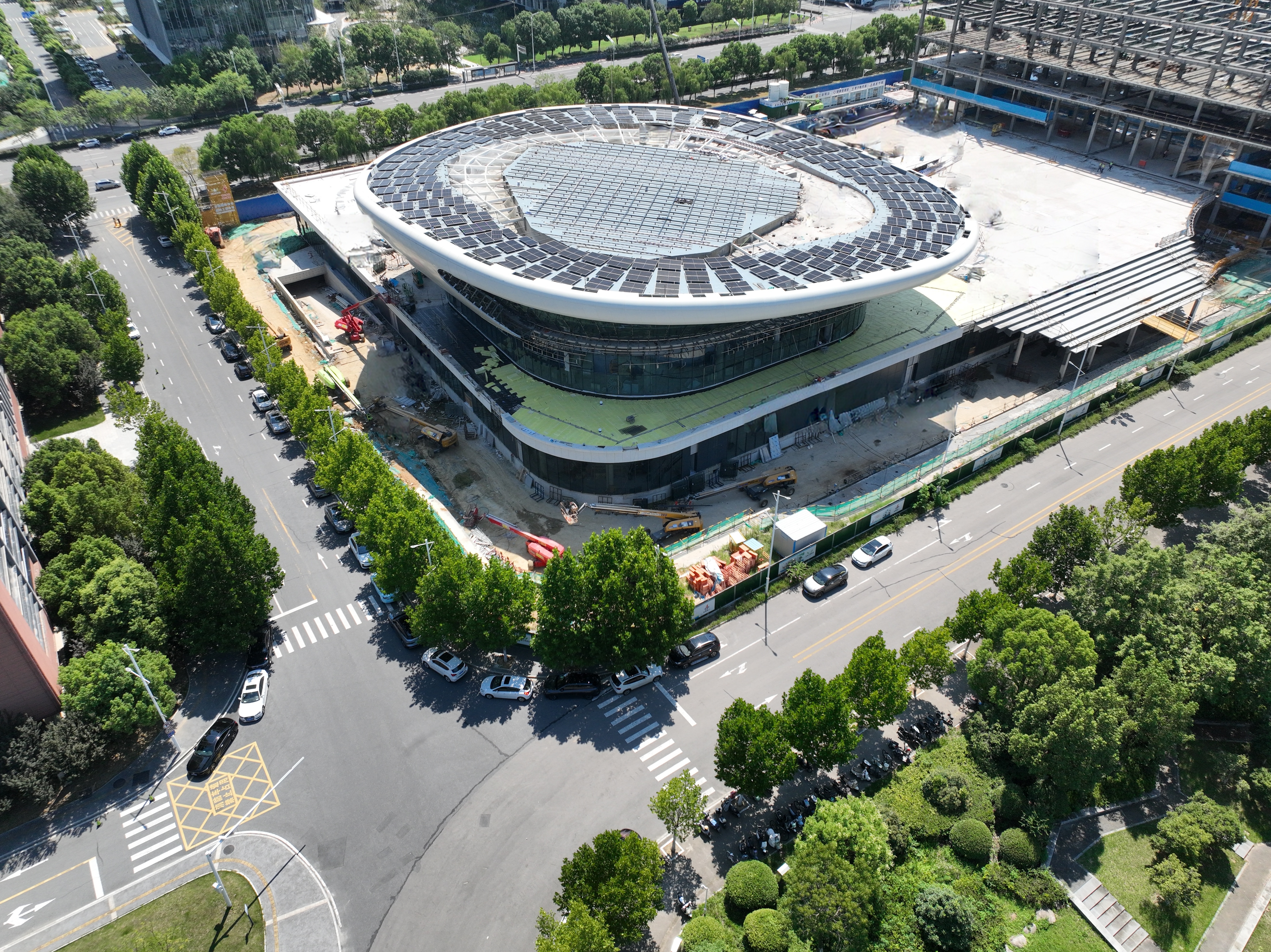 項(xiàng)目施工中面臨諸多挑戰(zhàn),報(bào)告廳處的雙曲面造型幕墻堪稱其中最難攻克的 “堡壘”。這個(gè)異型幕墻系統(tǒng)由1544塊雙曲鋁板、350塊扭曲玻璃以及近3萬個(gè)坐標(biāo)點(diǎn)構(gòu)成,所有構(gòu)件均為雙曲異形且尺寸跨度大,對(duì)加工精度和安裝貼合度的要求極高。項(xiàng)目團(tuán)隊(duì)不僅要解決復(fù)雜的放線定位問題,還要將復(fù)雜的圖紙精確還原到施工現(xiàn)場,這無疑是一項(xiàng)艱巨的任務(wù)。