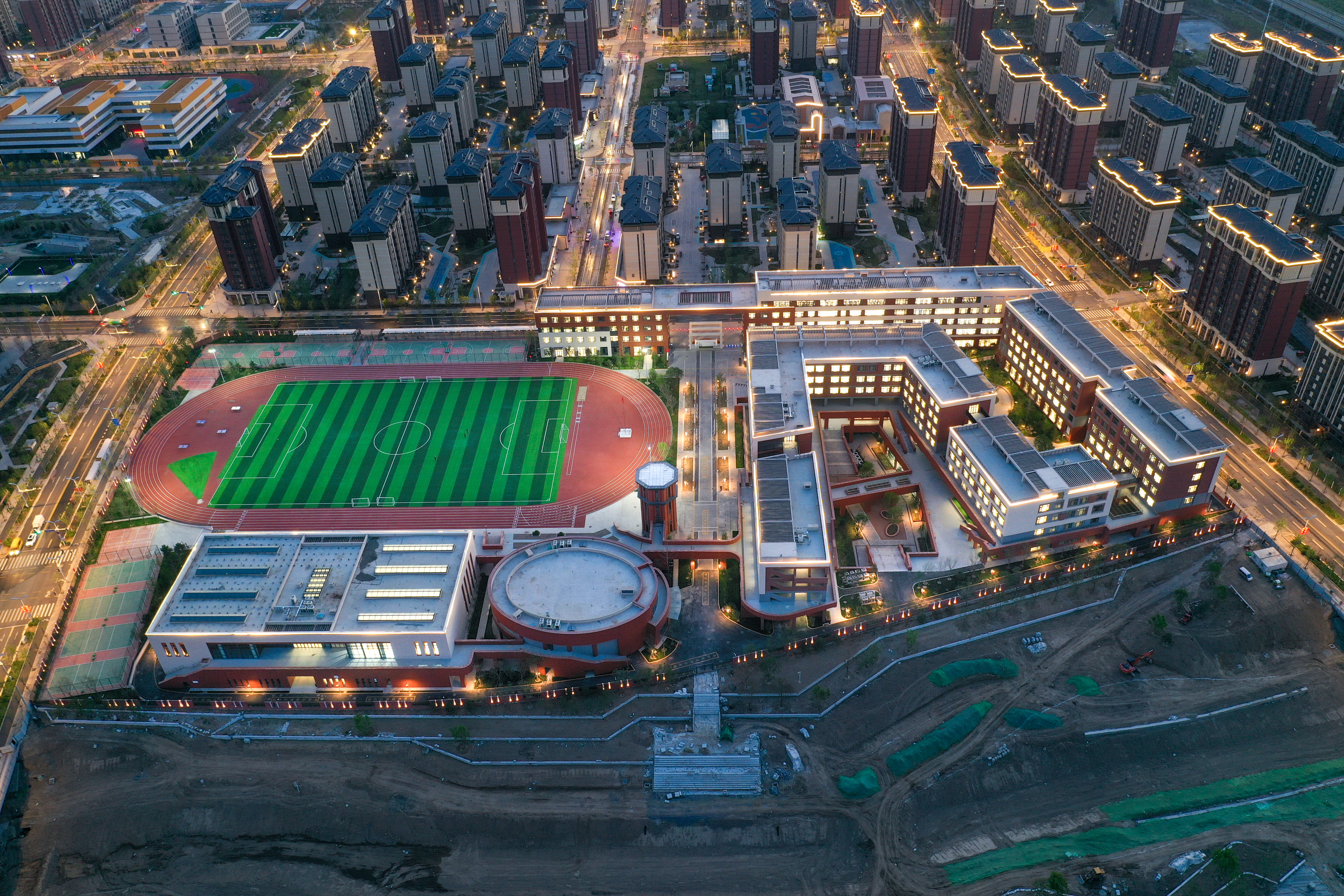 在合肥一中淝河校區(qū)建設(shè)中,充分利用BIM技術(shù)進(jìn)行推演排版深化,通過對(duì)比外立面鋁板顏色、調(diào)整外立面分縫形式等細(xì)節(jié),對(duì)樣板進(jìn)行反復(fù)推敲,切實(shí)使設(shè)計(jì)理念得到充分展現(xiàn)。同時(shí),為給師生創(chuàng)造安全、舒適、環(huán)保的學(xué)習(xí)工作環(huán)境,校區(qū)在建設(shè)過程中采用了一系列先進(jìn)的環(huán)保技術(shù)和設(shè)備。如教室照明方面,每間教室天花板均配備12盞超大的LED健康護(hù)眼燈,燈光接近自然光,在光照度、均勻度、頻閃、眩目值等方面均有充足保障,有效呵護(hù)學(xué)生視力健康。在內(nèi)裝飾完成后,進(jìn)行第一次環(huán)保檢測(cè),待課桌椅進(jìn)場(chǎng)后再進(jìn)行第二次環(huán)保檢測(cè),通過多次檢測(cè)確保環(huán)境質(zhì)量達(dá)標(biāo),讓師生安心學(xué)習(xí)和工作。此外,校區(qū)還建設(shè)了一條長(zhǎng)達(dá)1150米的風(fēng)雨連廊,連接全部14棟地上單體,方便學(xué)生在惡劣天氣下往返于各建筑群之間,體現(xiàn)了人性化的設(shè)計(jì)理念。