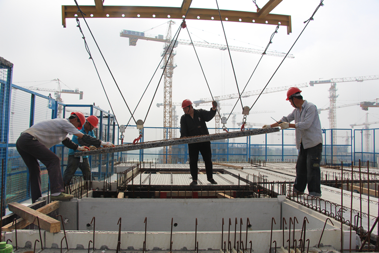 國慶期間二公司各項目搶工不停歇,康利園、沁園、正大桐山國際廣場項目混凝土澆筑、預(yù)制構(gòu)件疊合板、墻板吊裝施工井然有序,圖為沁園項目進行疊合板吊裝。