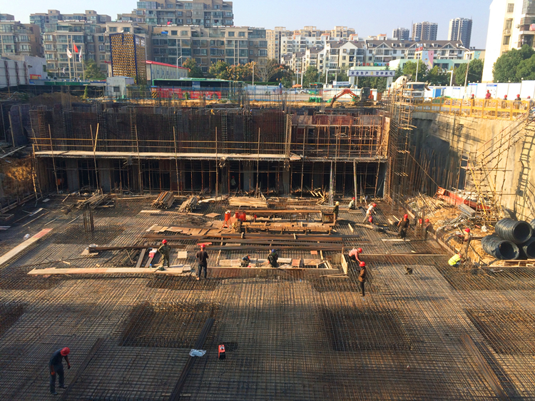 在一公司藝境項目的最后一塊地下室頂板上,工人師傅們頭戴安全帽,手拿工具,綁扎鋼筋、支模板、澆筑混凝土,揮灑激情,全心全意的為項目結(jié)構(gòu)封頂做努力。