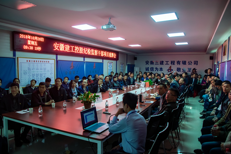 2018年10月26日上午,集團公司紀委書記宋志華率集團各子、分公司紀檢監(jiān)察干部培訓(xùn)班成員100余人到安徽三建八公司承建的市青少年綜合實踐基地項目,觀摩調(diào)研項目黨建和廉潔建設(shè)。