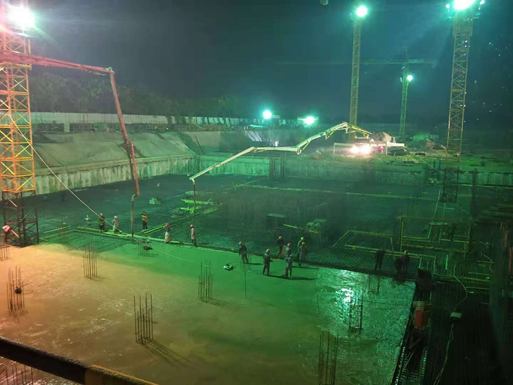 為全面保障項目搶工順利實施,項目部采取優(yōu)選班組、優(yōu)化施工組織、優(yōu)化工作面等多方面措施。為了保障夜間施工順利進行,項目部實施夜間值班制度并多次協(xié)調環(huán)保部門,在保障不擾民的情況下日夜施工。就這樣,項目部白天安排扎鋼筋,支模版,晚上澆筑砼,24小時交叉作業(yè)。
