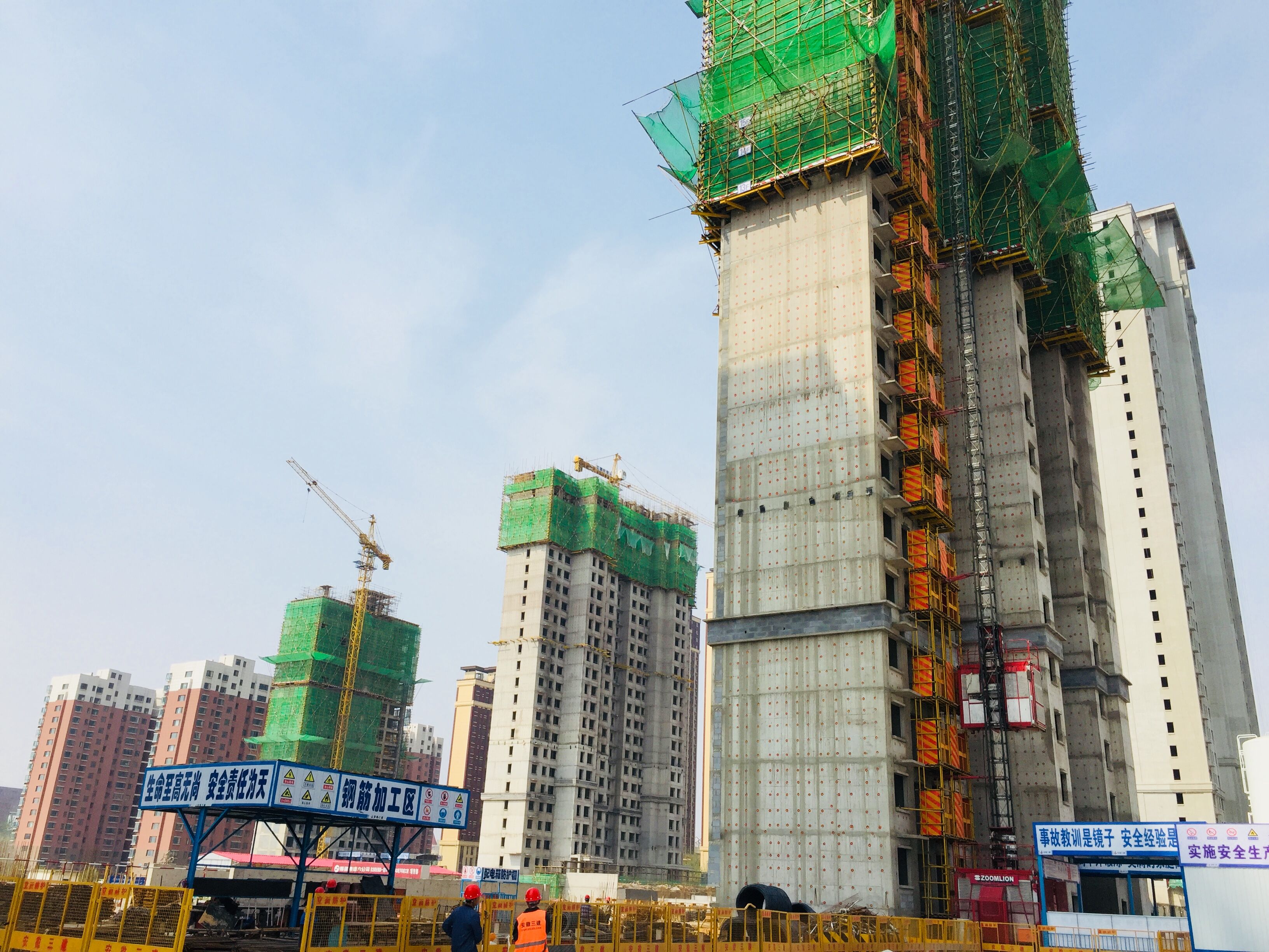 有一期項(xiàng)目的生產(chǎn)經(jīng)驗(yàn)做鋪墊,2017年2月至7月,大連公司接連與力高集團(tuán)達(dá)成合作,承接了煙臺(tái)陽光海岸二期、三期項(xiàng)目工程。2017年煙臺(tái)房市逐漸呈現(xiàn)火爆態(tài)勢(shì),力高集團(tuán)為了趕這波售房熱潮,要求二期項(xiàng)目在2017年10月18日前務(wù)必完成四棟樓的售樓節(jié)點(diǎn)(地上四層)任務(wù)。為保證節(jié)點(diǎn)順利完成,項(xiàng)目部提出“大干50天,確保節(jié)點(diǎn)如期完成”的口號(hào),細(xì)致部署每個(gè)施工節(jié)點(diǎn)。最終項(xiàng)目部比原工期提前20天,順利的完成了甲方的預(yù)售節(jié)點(diǎn)任務(wù)。