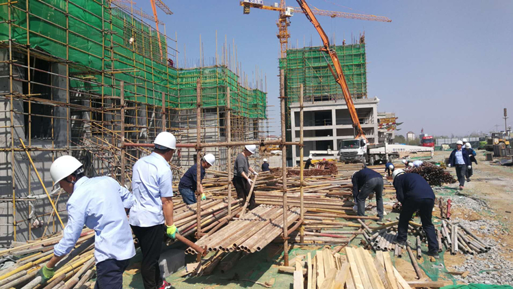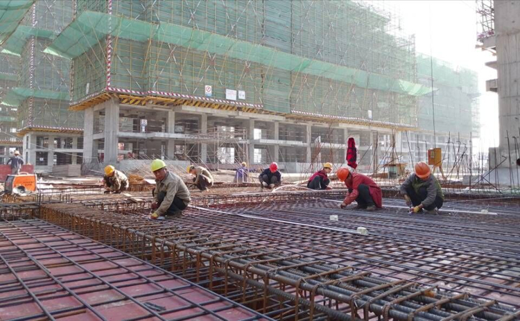 八公司臨泉銀杏苑項目:工人師傅軋鋼機、支模板,大家各司其職、相互協(xié)作。