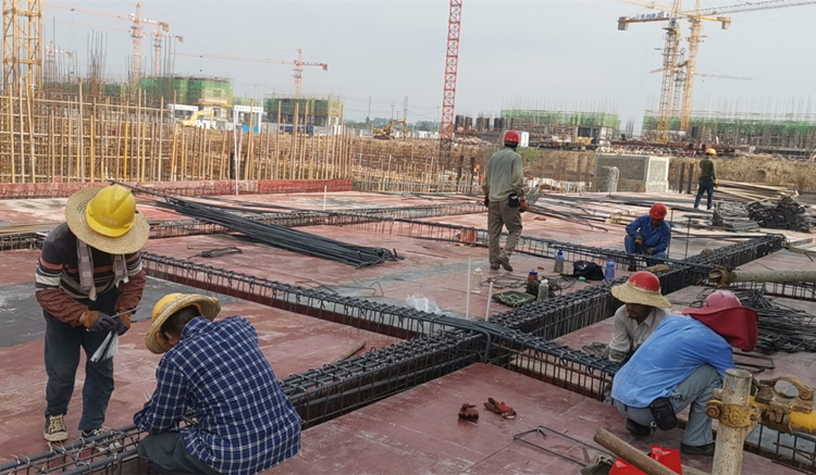 十一公司繁昌春谷熙岸、天長恒大一標等項目現(xiàn)場工正在綁扎鋼筋、緊張作業(yè)