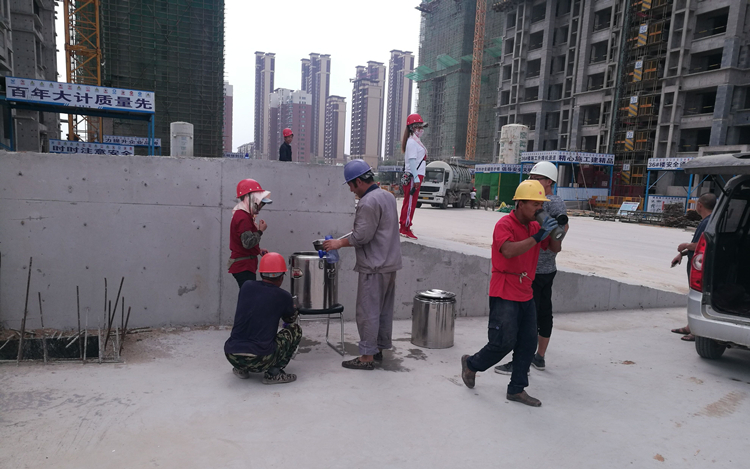 三伏天到撲面而來的熱氣令人眩暈,持續(xù)的高溫天氣中,為了項目進度質量,防水公司依舊奮戰(zhàn)在施工現(xiàn)場第一線,底板、外墻、室內施工處隨處可見一線工人的身影,大家揮汗如雨,越是高溫防水、保溫工作也越要高效率高質量的完成。粘貼卷材、涂刷涂料、粘貼板材等工序都按照施工工藝不折不扣的被完成。圖為,分公司為保障項目人員健康發(fā)放防暑降溫物品