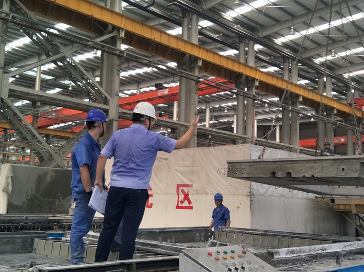 建筑工業(yè)公司生產車間機器轟鳴、熱浪滾滾,目前主要在為聚賢苑、明發(fā)、沁園供應項目構件