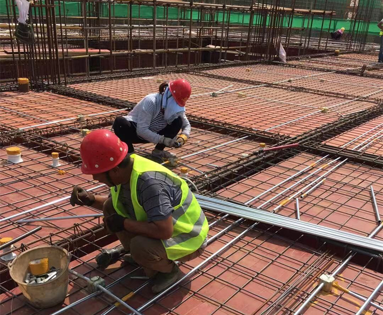 為保證施工工期,二公司、七公司共同承建的濱湖沁園項目鋼筋班組工人冒著高溫天氣綁扎鋼筋,項目管理人員跟班作業(yè)同時進行檢查。為防止管理人員及工人出現(xiàn)高溫中暑現(xiàn)象,項目制定了嚴格的作息時間,上午10:00-下午3:00時間段禁止室外作業(yè),以保證施工人員的身體健康。