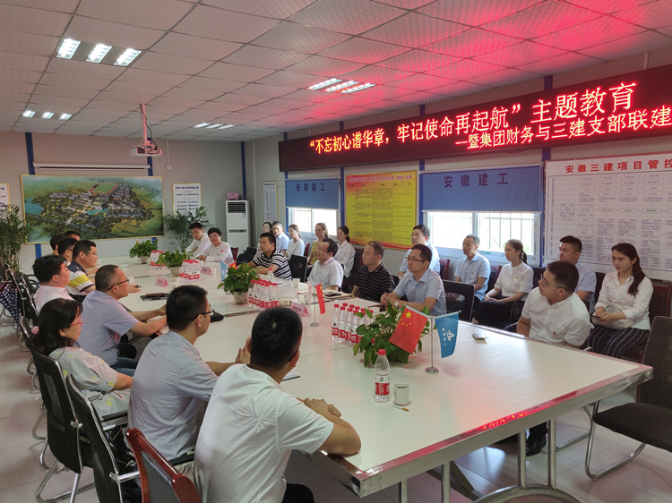 為貫徹落實(shí)習(xí)近平新時(shí)代中國(guó)特色社會(huì)主義思想,扎實(shí)開(kāi)展好“不忘初心、牢記使命”主題教育,2019年8月9日下午兩點(diǎn),安徽三建公司與安建財(cái)務(wù)公司聯(lián)合在安徽三建黃麓師范學(xué)校項(xiàng)目部舉辦了“不忘初心譜華章,牢記使命再起航”主題黨日活動(dòng)。安建財(cái)務(wù)兩個(gè)支部,三建機(jī)關(guān)兩個(gè)支部、八公司黃麓示范項(xiàng)目黨支部部分黨員共60余人參加了競(jìng)賽活動(dòng)。正在該項(xiàng)目調(diào)研的建工控股副總經(jīng)理李有貴,以及參加調(diào)研的安建財(cái)務(wù)總經(jīng)理于忠山、安徽三建總經(jīng)理何洪春、副總經(jīng)理張斌、財(cái)務(wù)總監(jiān)陸春濤等參與了黨日活動(dòng)。李有貴高度評(píng)價(jià)本次聯(lián)建活動(dòng)。