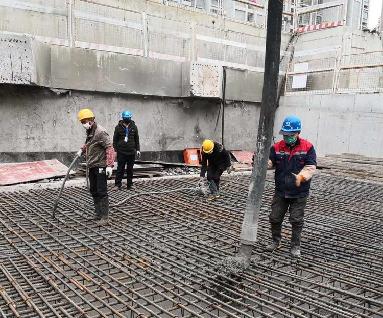 軌道交通項(xiàng)目工人師傅正在澆筑混凝土