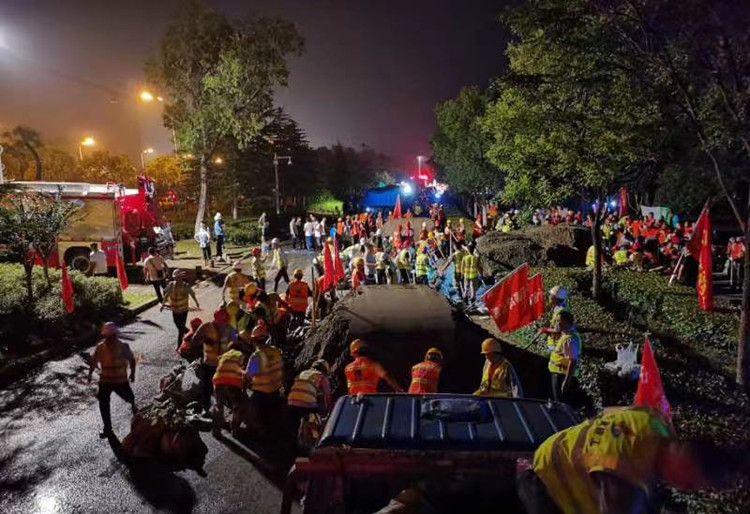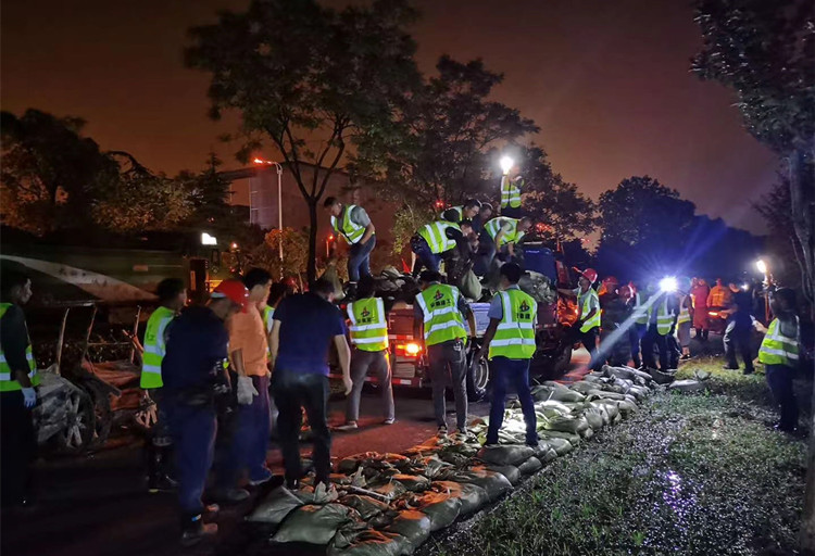 項(xiàng)目黨支部全體黨員及項(xiàng)目管理人員帶領(lǐng)現(xiàn)場(chǎng)工人共計(jì)50余人趕往環(huán)湖北路開(kāi)展抗洪搶險(xiǎn)工作。大家克服克服種種困難,挑燈夜戰(zhàn),全力奮戰(zhàn)在大堤上,至21日凌晨3時(shí)20分,在地勢(shì)較低的環(huán)湖北路筑起1米多高,300多米長(zhǎng)的沙袋墻,有效化解了巢湖水漫淹環(huán)湖大道的威脅。