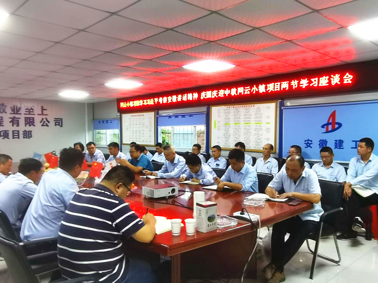 國(guó)慶期間九公司班子分赴各地項(xiàng)目慰問堅(jiān)守一線的項(xiàng)目職工并開展學(xué)習(xí),圖為九公司支部書記侯田漢慰問淮南網(wǎng)云小鎮(zhèn)項(xiàng)目,并帶領(lǐng)項(xiàng)目職工學(xué)習(xí)習(xí)近平考察安徽重要講話精神。