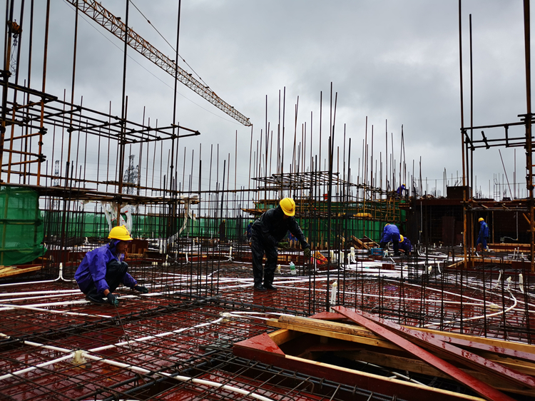 一公司:武漢華發(fā)中央公園、湛江力高悅璟灣項(xiàng)目組織職工深刻學(xué)習(xí)領(lǐng)會(huì)十九屆五中全會(huì)精神,以全會(huì)深刻內(nèi)涵推動(dòng)項(xiàng)目高質(zhì)量建設(shè)。圖為湛江力高悅璟灣項(xiàng)目鋼筋班組冒雨捆扎鋼筋。