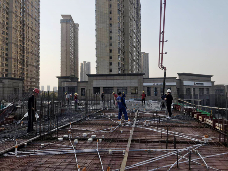 裝飾公司:合肥工業(yè)學(xué)校財(cái)經(jīng)樓改造項(xiàng)目部組織項(xiàng)目管理人員學(xué)習(xí)宣傳貫徹黨的十九屆五中全會(huì)精神,要求職工全面領(lǐng)會(huì)黨的十九屆五中全會(huì)的重大意義和精神實(shí)質(zhì),面對(duì)新挑戰(zhàn),繼續(xù)尋求突破、提升施工技術(shù)的小革新,提效能、增產(chǎn)值。圖為項(xiàng)目工人正在進(jìn)行屋頂混凝土澆筑。