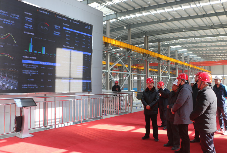 方廷勇一行觀看智能化實(shí)時(shí)看板