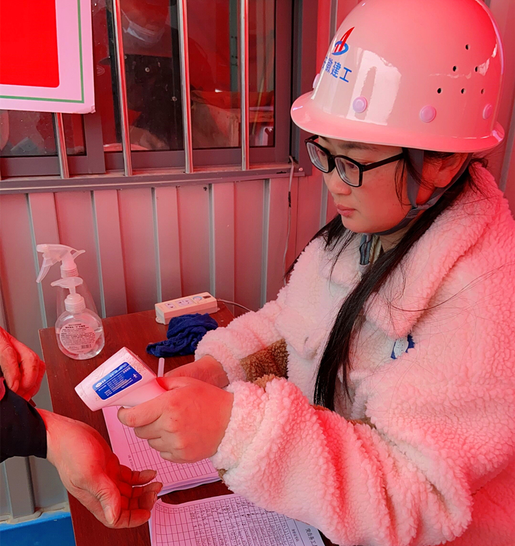 七公司御景黃城項目疫情防控監(jiān)督員殷玲玲在工地入口認(rèn)真做好體溫檢查登記工作