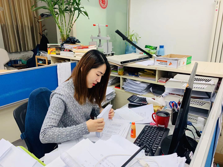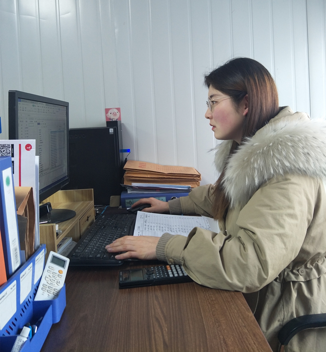 十公司財務(wù)科員張俠鳳(懷孕7個多月)堅守崗位處理審計往來函證回函統(tǒng)計工作