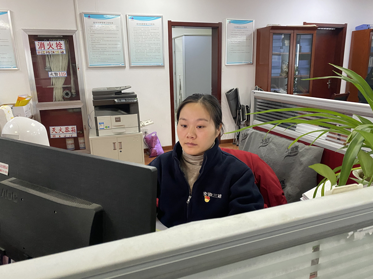 蚌埠公司淮南鼎元世家項目部核算員黃夢玲正在分解工程量、報招標(biāo)計劃、整理竣工項目成本資料